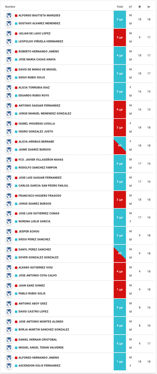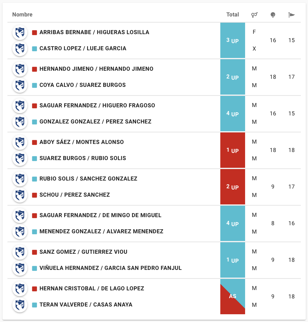 Y el último día apareció la gran calidad del equipo rival y el cansancio en el nuestro. Desde el principio pusieron varios partidos con el marcador en azul con varios hoyos de ventaja, Aboy, Dani y Paco Villaseñor vieron como los primeros hoyos iban cayendo a manos de sus rivales de forma consistente.