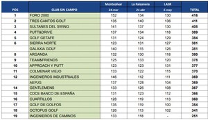 Si contamos el torneo por equipos, nuestro equipo se aupó a la 4ª posición empatado a puntos con el 3º otra vez a 6 puntos del líder (Tres Cantos), y otra vez a tan solo 1 punto del 2º.