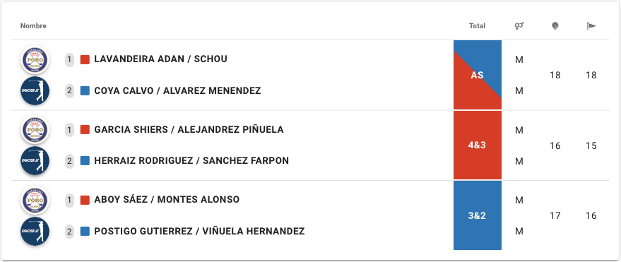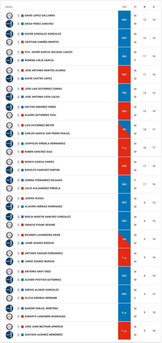 Y en la jornada del domingo, Alicia Arribas sustituyó a Julián Pérez que por la orografía del terreno, tuvo que declinar jugar en la segunda jornada. Y es que el campo además de su diseño enclavado en un lugar precioso entre montañas, había sufrido lluvias intensas en los días previos a la competición lo que hizo que al menos 10 personas besasen el suelo tras resbalarse en las cuestas embarradas de los distintos hoyos.