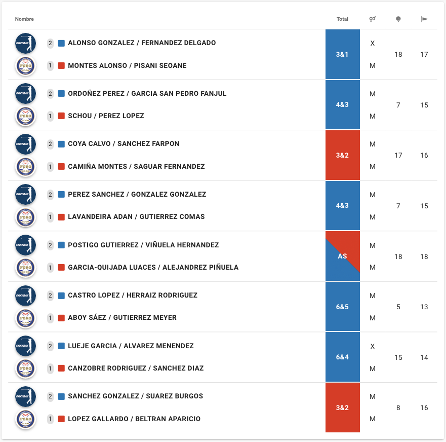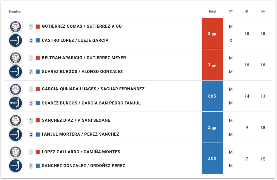 Tras un picoteo en el mismo campo, salimos a jugar los partidos que quedaban pendientes de Foursome, y aquí de nuevo nos ganaron 3-2 dejando el global en 10-6 a su favor.