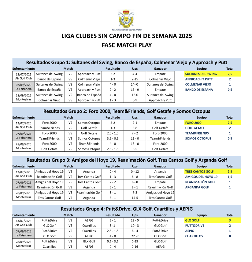 Además, incluyo la tabla de resultados finales de todos los grupos por si queréis cotillear como han quedado otros clubes sin campo.